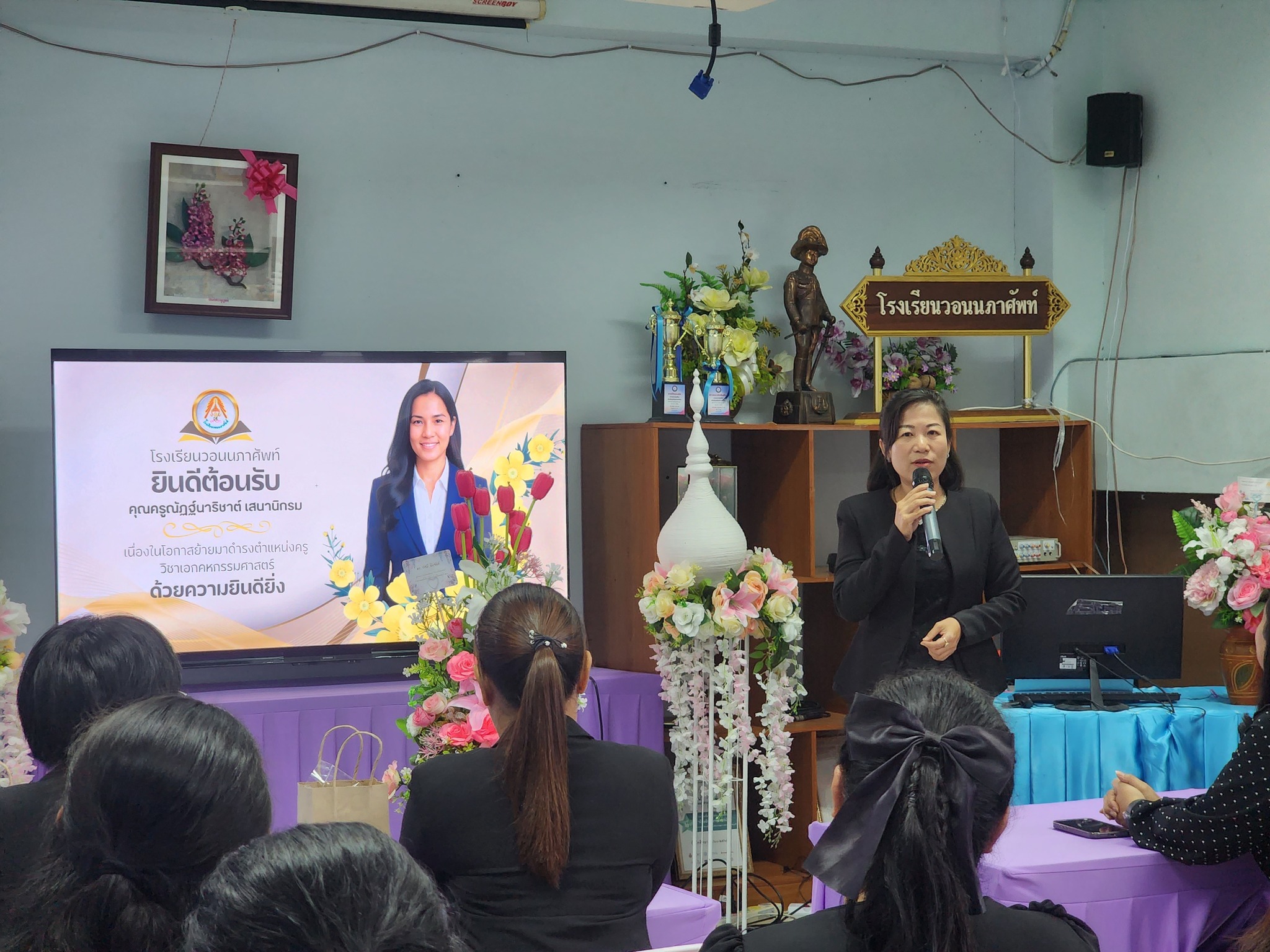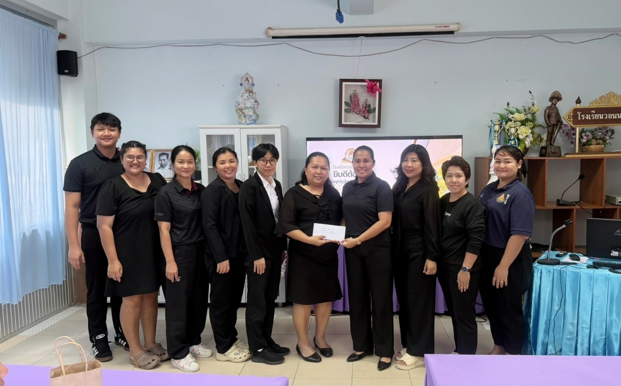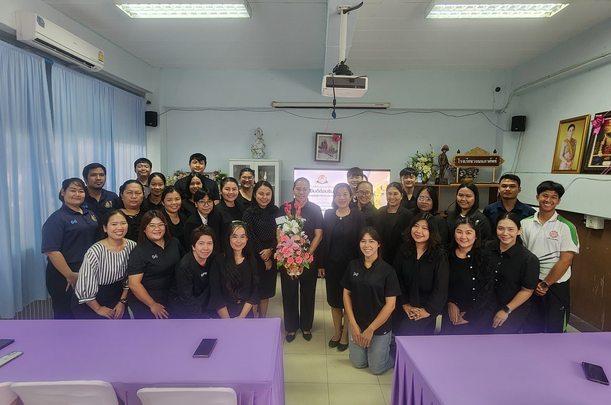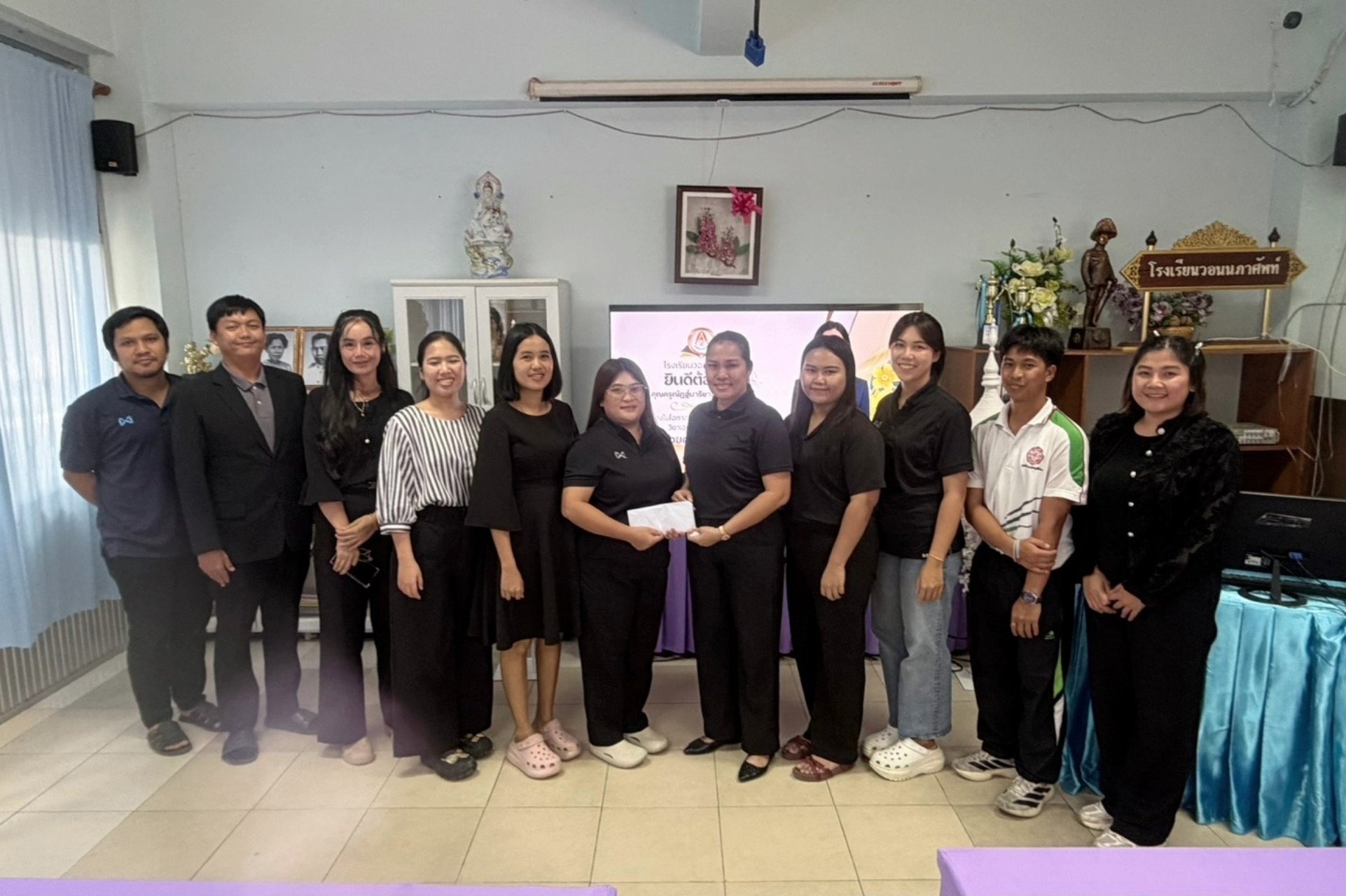 ร่วมแสดงความยินดี เนื่องในโอกาส ครูณัฏฐ์นาริชาต์ เสนานิกรม ตำแหน่ง ครู ย้ายมา โรงเรียนวอนนภาศัพท์ อำเภอ เมืองจังหวัด ชลบุรี วันที่ 31 ตุลาคม 2568 นำโดย ดร.รัศมี ฉิมขันธ์ ผู้อำนวยการโรงเรียนวัดท้องคุ้ง “ไพโรจน์ประชาสรรค์” คณะผู้บริหาร และข้าราชการครู ได้เดินทางมาร่วมแสดงความยินดี เนื่องในโอกาส ครูณัฏฐ์นาริชาต์ เสนานิกรม ตำแหน่ง ครู ย้ายมา โรงเรียนวอนนภาศัพท์ อำเภอ เมืองจังหวัด ชลบุรี