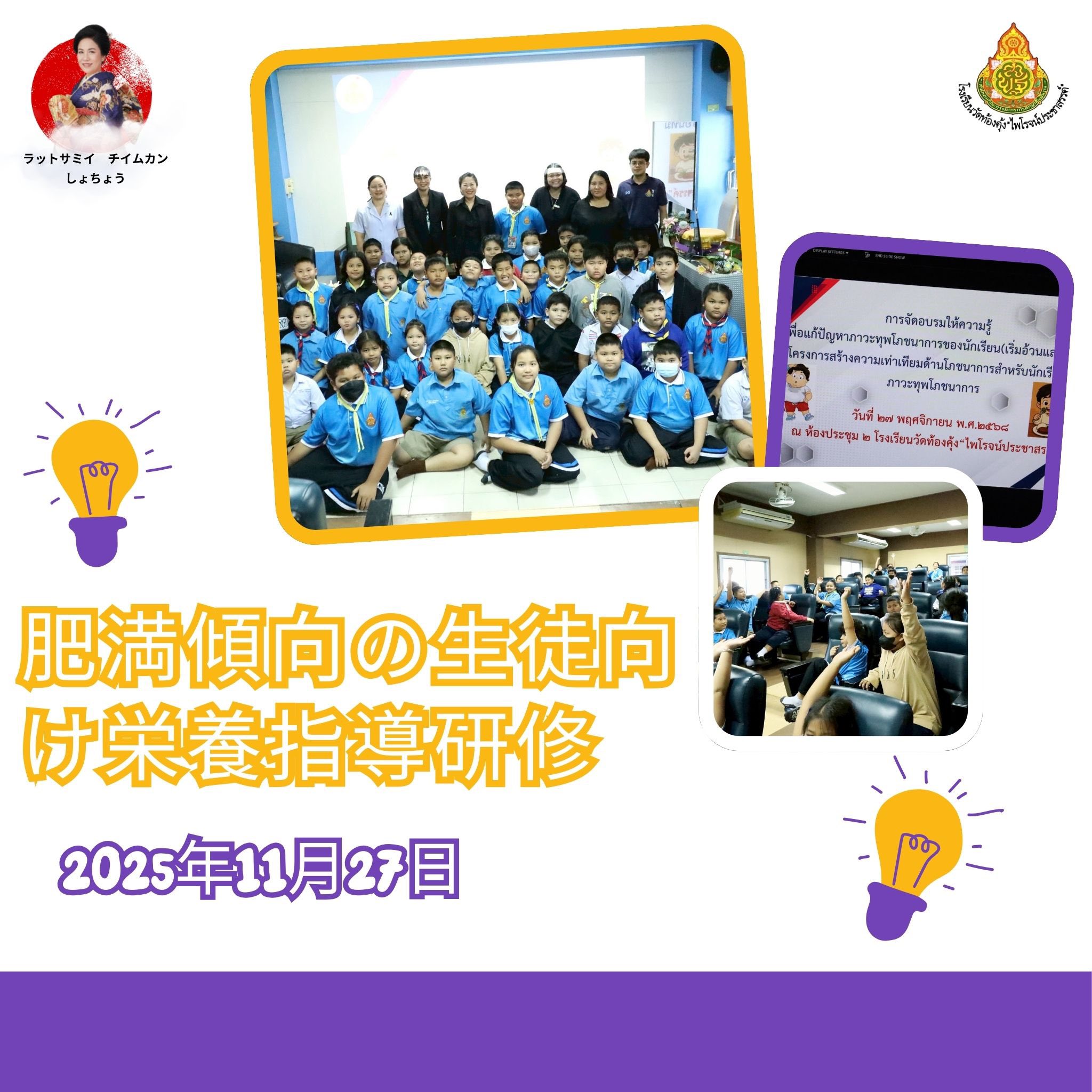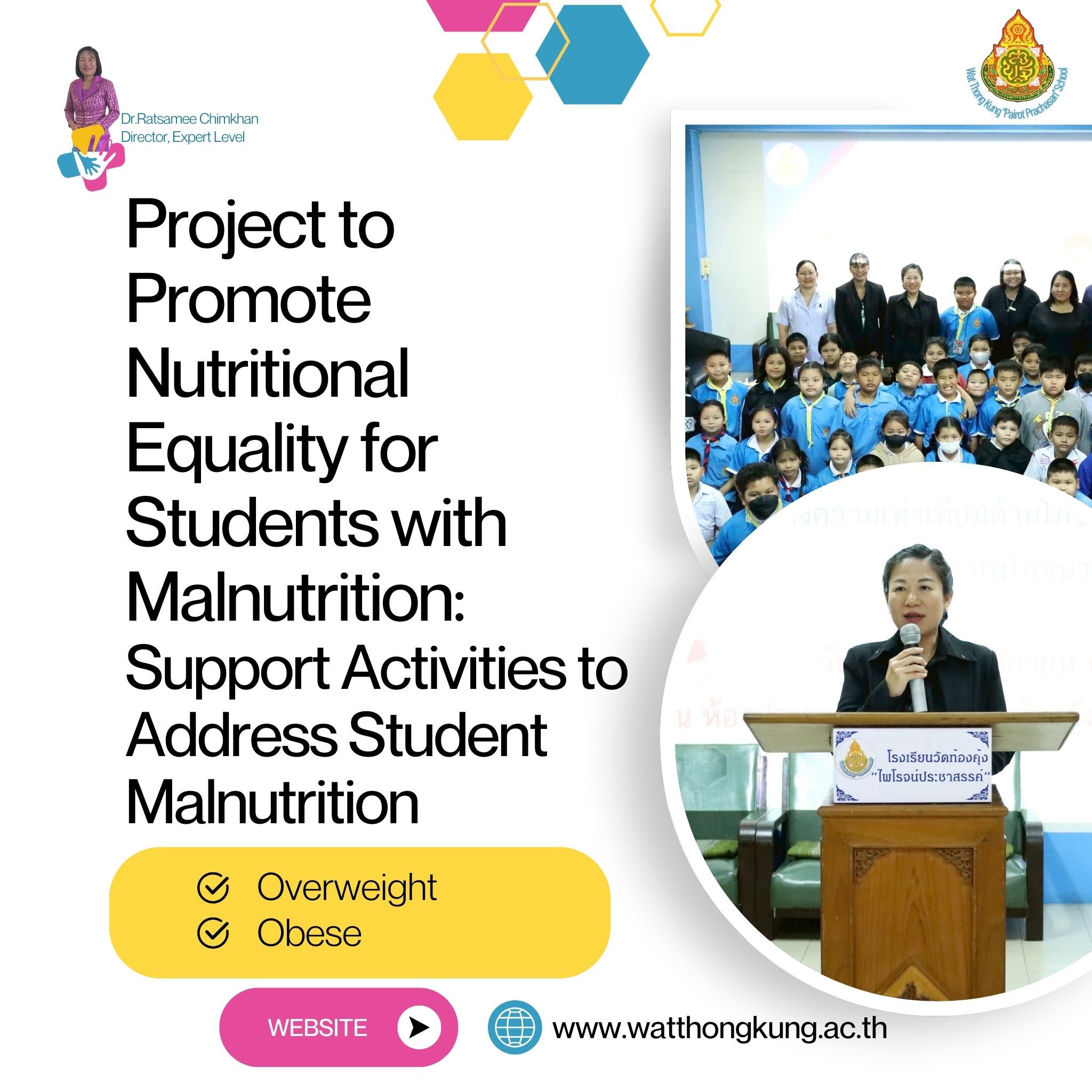 โครงการงานสร้างความเท่าเทียมด้านโภชนาการสำหรับนักเรียนที่มีภาวะทุพโภชนาการ โครงการงานสร้างความเท่าเทียมด้านโภชนาการสำหรับนักเรียนที่มีภาวะทุพโภชนาการ กิจกรรมสนับสนุนเพื่อแก้ปัญหาภาวะทุพโภชนาการของนักเรียน(เริ่มอ้วนและอ้วน)