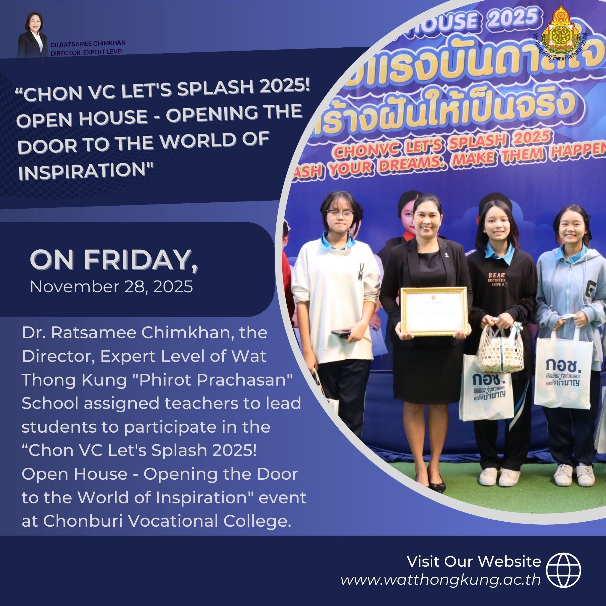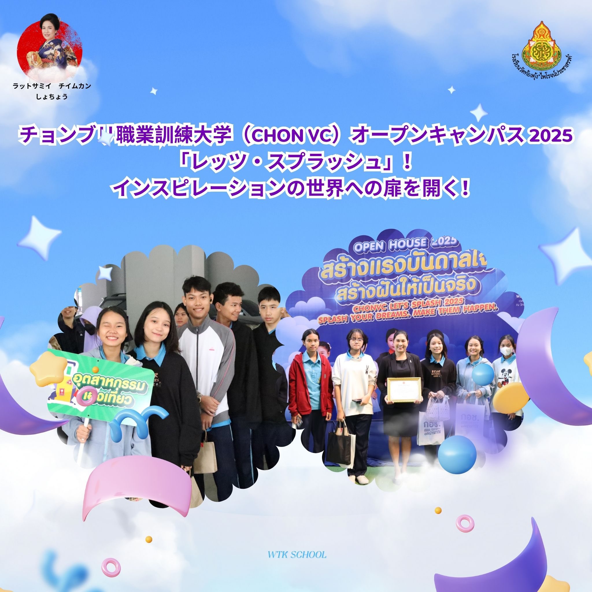 โรงเรียนวัดท้องคุ้ง”ไพโรจน์ประชาสรรค์” นำนักเรียนร่วมงานเปิดบ้าน🌊✨ Chon VC Let’s Splash 2025! ✨🌊เปิดประตูสู่โลกแห่งแรงบันดาลใจ 💫“Splash Your Dreams. Make Them Happen.”